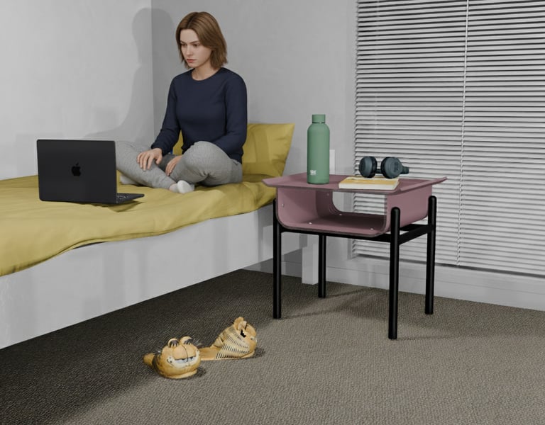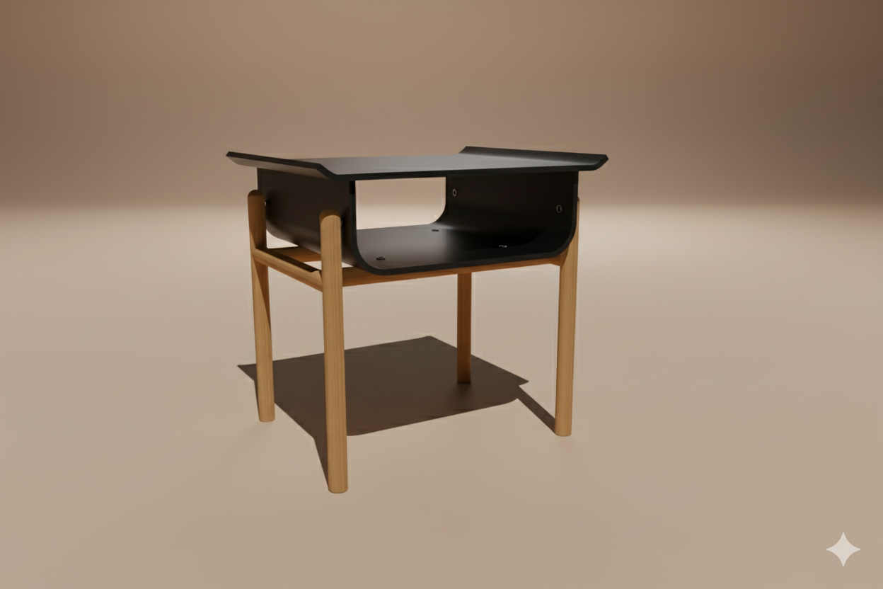 The Anciva Side Table blends ancient inspiration with modern living. Its name combines “Ancient” and “Viva,”reflecting a dialogue between tradition and vitality. Inspired by the Torii gates of Japan, Anciva carries the symbolism of welcome and transition, while its use of acrylic and contemporary materials adds a sleek, modern edge. Designed for young design enthusiasts and urban dwellers, it features a knock-down construction that assembles and disassembles effortlessly, making it ideal for rented spaces or frequent moves. Lightweight yet striking, Anciva is both functional and sculptural, offering a piece of history reimagined for today’s flexible, creative lifestyles.