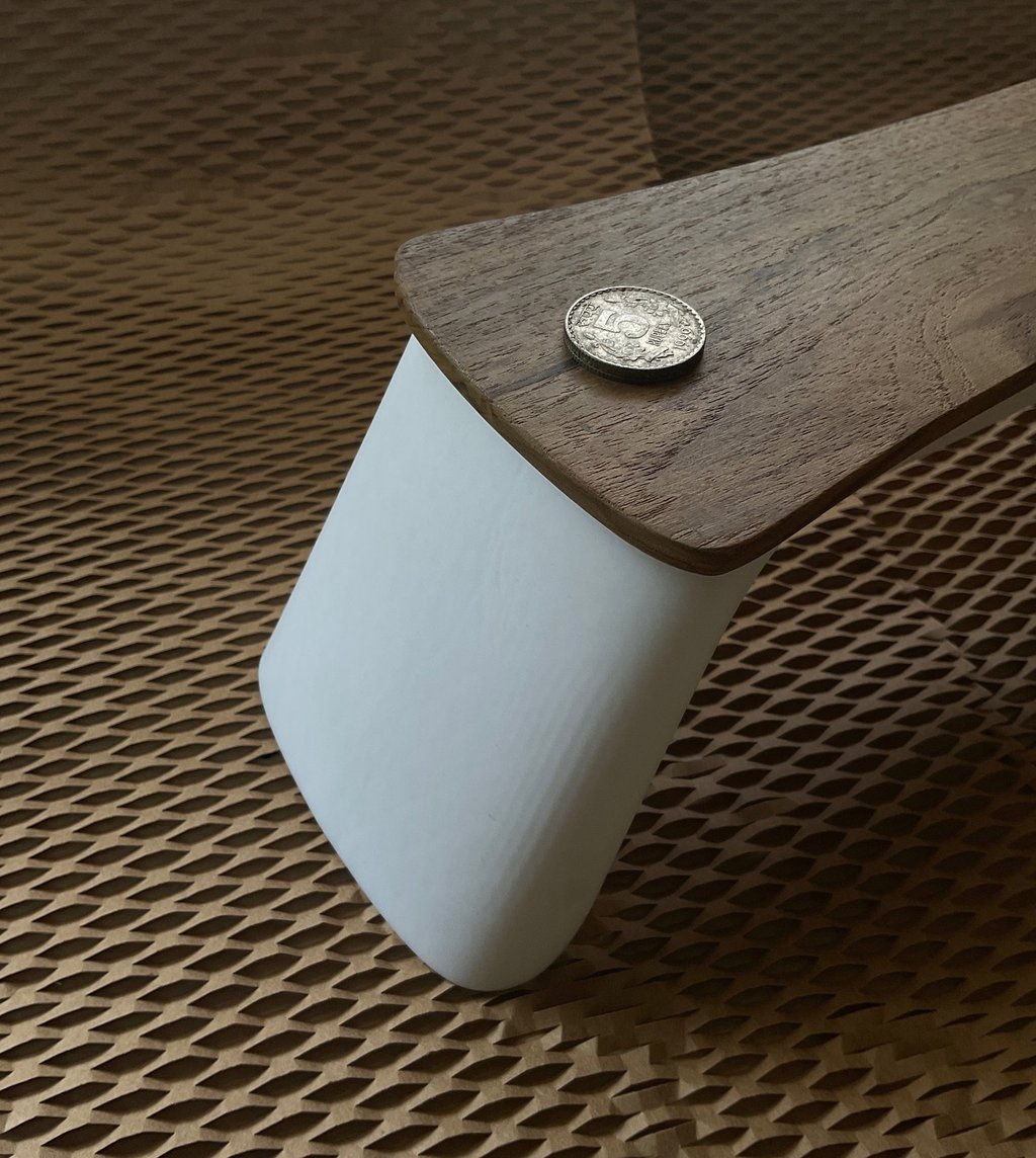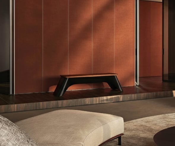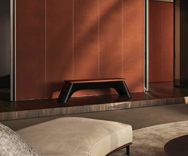 Crafted in carbon fiber, the bench becomes an unobtrusive part of the space, quietly merging with its surroundings while adding a layer of refinement through its sculptural simplicity.