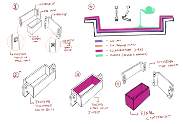 Resin-to-fiber ratio is generally 1:1 to 1.2:1 by weight for hand layup.