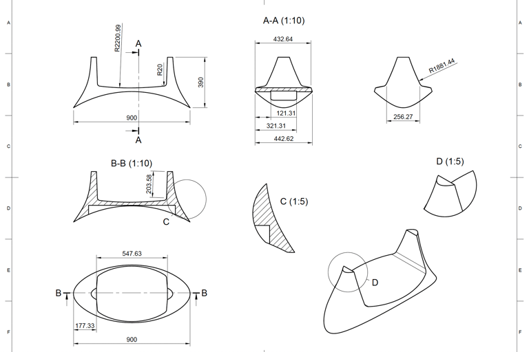 Once the fom and dimensions were finalised I took the technical drawing into effect for making the product into western hemlock. To support the wooden A metal 'C' plate was added at the bottom that took the majority of the load.